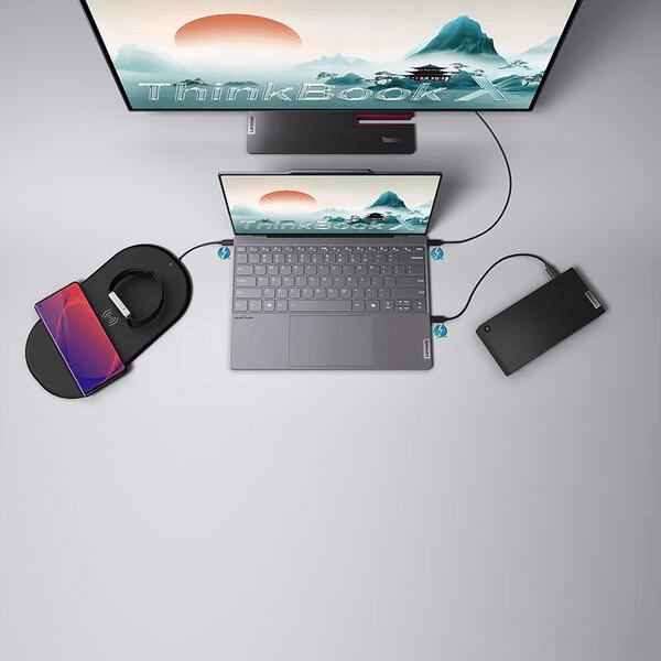 续航表现良好,77Wh大容量电池配合智能散热和低能耗设计,航时可达一天。快充功能也很实用,30分钟充电可达50%。外观上,机身轻薄,三面金属机身加量子灰配色,低调而耐看。